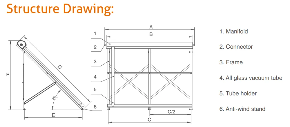 2.Unpressurized,can be used for natural circulation system,large collector area,easy to assemble and install.
